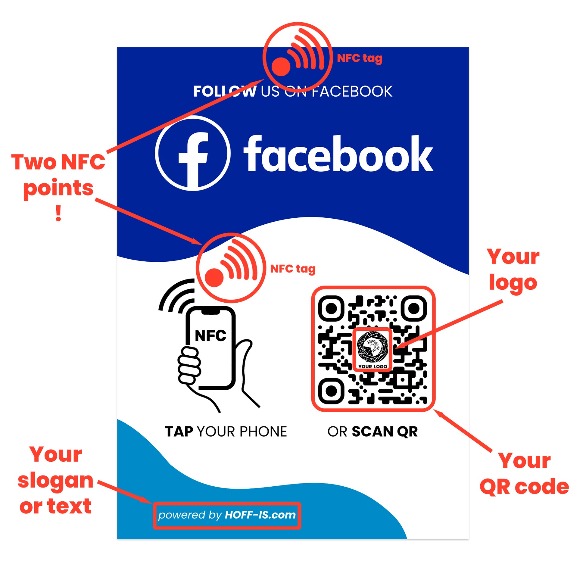 Get more followers with our NFC / QR Code stands for Facebook follows.